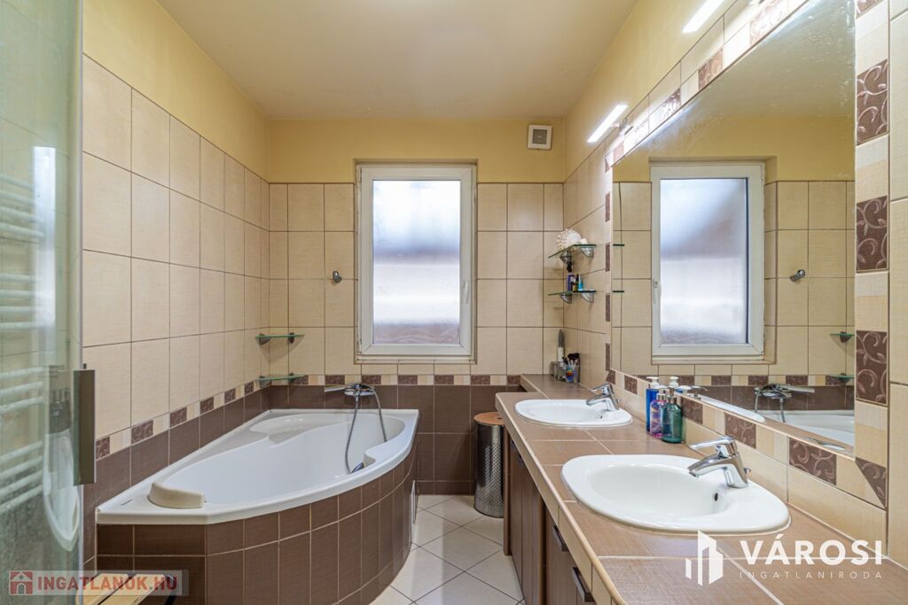 hálószoba, tágas fürdőszoba (dupla, épített mosdóval, fürdőkáddal és tusolóval), külön