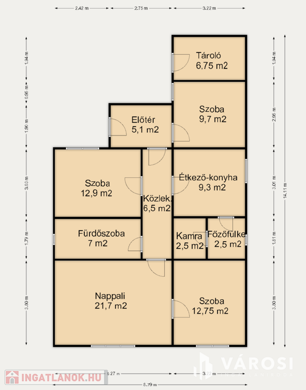 - 90 m2 alapterület, kényelmes egy 4 tagú család számára