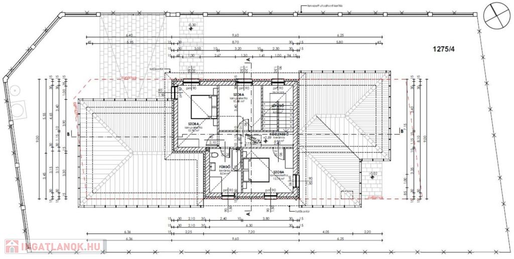 Az ingatlan egy 642m2 alapterületű saroktelken épül, garázzsal együtt két szinten összesen ~180nm alapterülettel.
