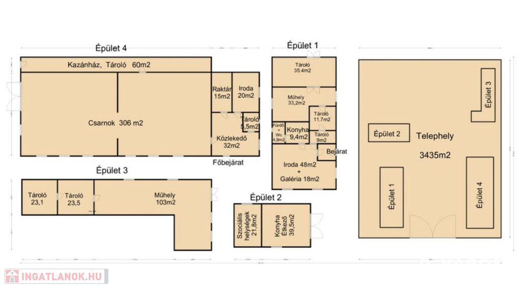 Az épületek mind tégla épületek, jó válaszfalas elrendezéssel, melynek köszönhetően igény szerint jól alakíthatók a belső terek.