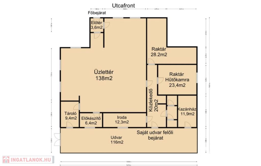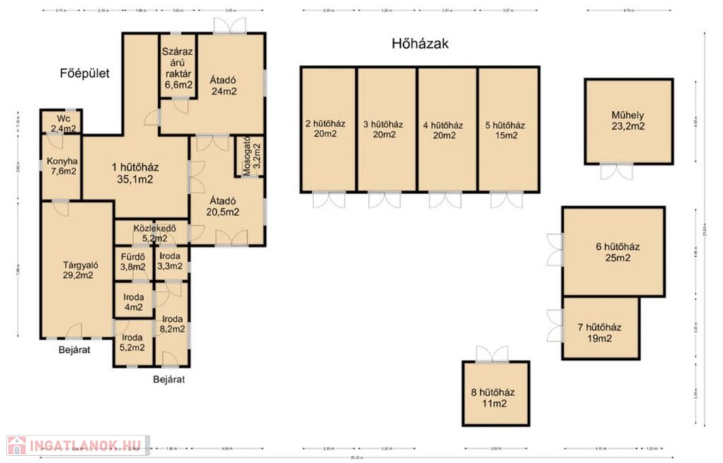 Az épületben lévő teljes felszerelés, polcok, hűtők valamint a teljes árúkészlet a vételár részét képezi.
