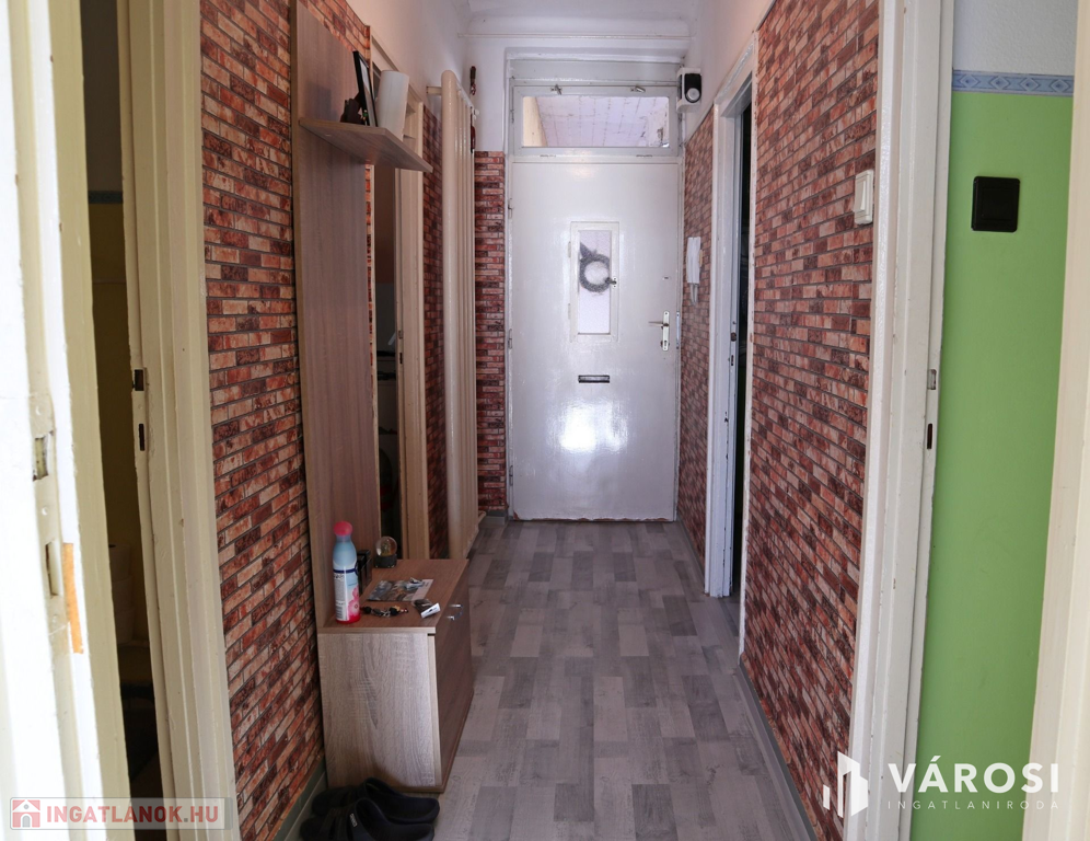 Eladásra kínálom Békés központjában a Széchenyi téren található IV. emeleti 71 m2-es tégla építésű lakást, mely a lakóépület zárószintjén helyezkedik el. Az ingatlan elmúlt évek során nagyobb felújításon nem esett át, a villanyvezetékek és a helyiségek burkolatainak cseréjét kivéve, de folyamatosan karbantartott, jó állapotú. A társasház tetőszerkezetének hőszigetelése a közelmúltban megtörtént. A 2 erkélyes lakásba, tiszta lépcsőházon és függőfolyosón keresztül juthatunk, ahonnan pazar kilátás nyílik Békés belvárosára. A fűtésről a lakótömbben található központi gázkazán gondoskodik, így a rezsiköltség is igen kedvezően alakul.