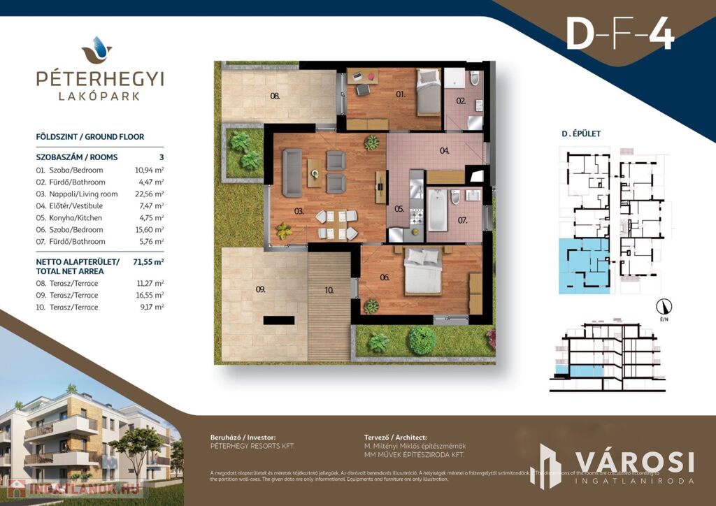 Alapterülete 71,55 m2 + 37 m2 terasz.