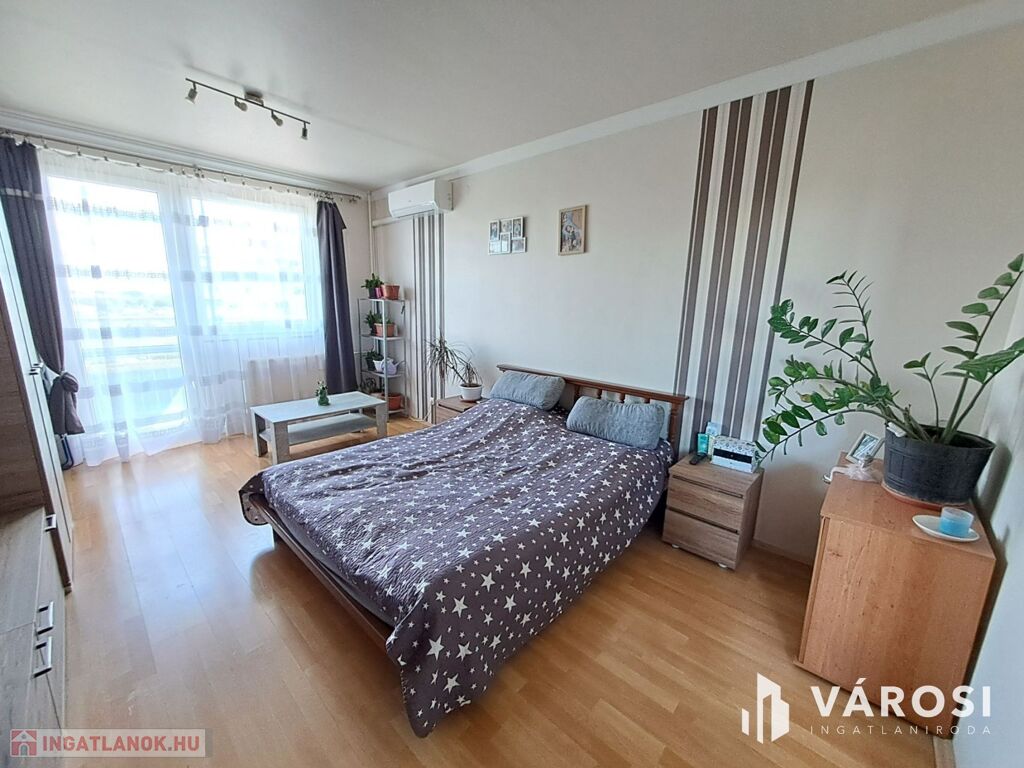 A 10 emeletes, kétliftes (személy- és teherlift) társasház 8. emeletén lévő felújított panel lakás zárt folyosón keresztül megközelíthető. A 3 szobából 2 külön nyílik, a szobák műanyag nyílászárókkal, szúnyoghálóval lettek ellátva. A szobákhoz tartozó beltéri nyílászárók esetében helytakarékos tolóajtóra esett a választás, növelve ezzel a térérzetet. A szobák padlóburkolata laminált parketta, míg a lakás többi helyisége járólappal burkolt. A nappaliban inverteres klíma került felszerelésre, ami nyáron biztosítja a kellemes hőmérsékletet.
