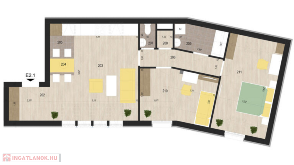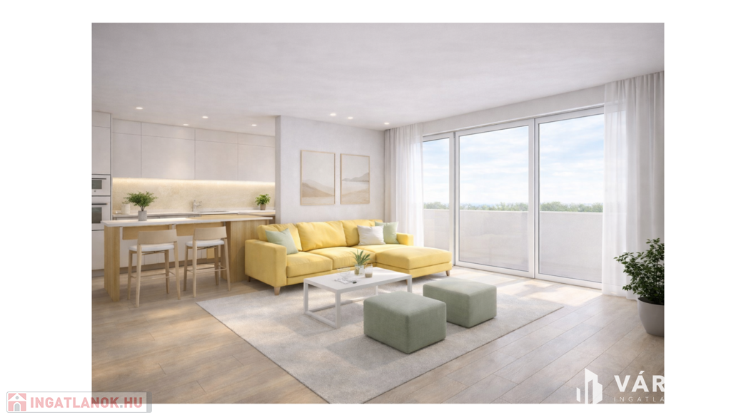 Alapterület: 57,24 m² nettó terület, tágas és világos terekkel.