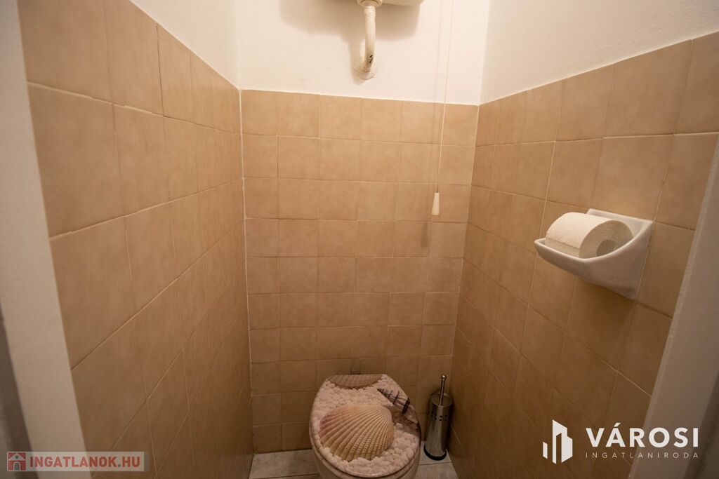- Beépített szekrények a közlekedőben, melyek sok pakolóhelyet biztosítanak, fürdőszoba külön wc