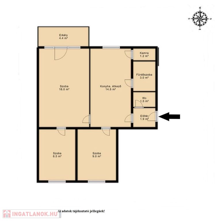 Egy tágas nappali, két félszoba, konyha étkezővel, kamra, fürdő, külön WC, és egy kellemes erkély – tökéletes egy reggeli kávéhoz vagy egy kis délutáni pihenéshez- helyiségekből áll. A nyugati fekvésű nappaliban és konyhában délután, a félszobákban pedig reggel, csodás napfény fogadja lakóit.