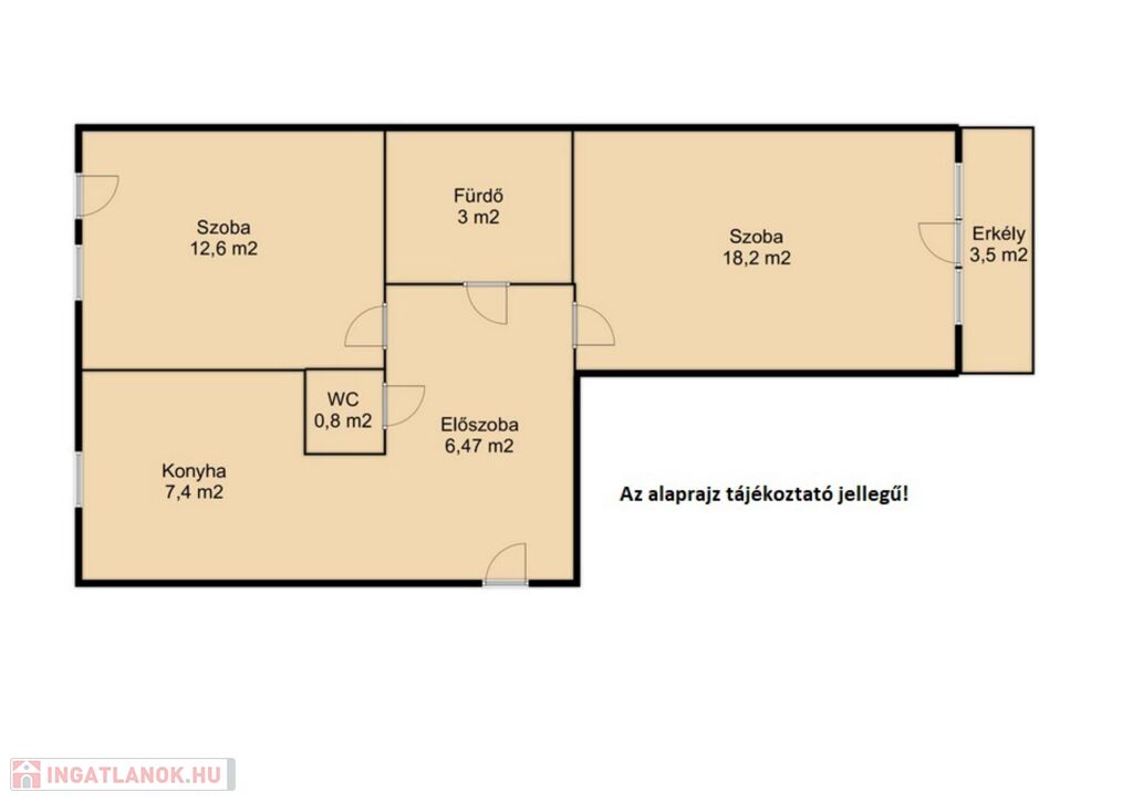 Az ingatlan elosztása: 2 szoba külön nyíló bejárattal, konyha, fürdőszoba, külön WC, illetve egy erkély.
