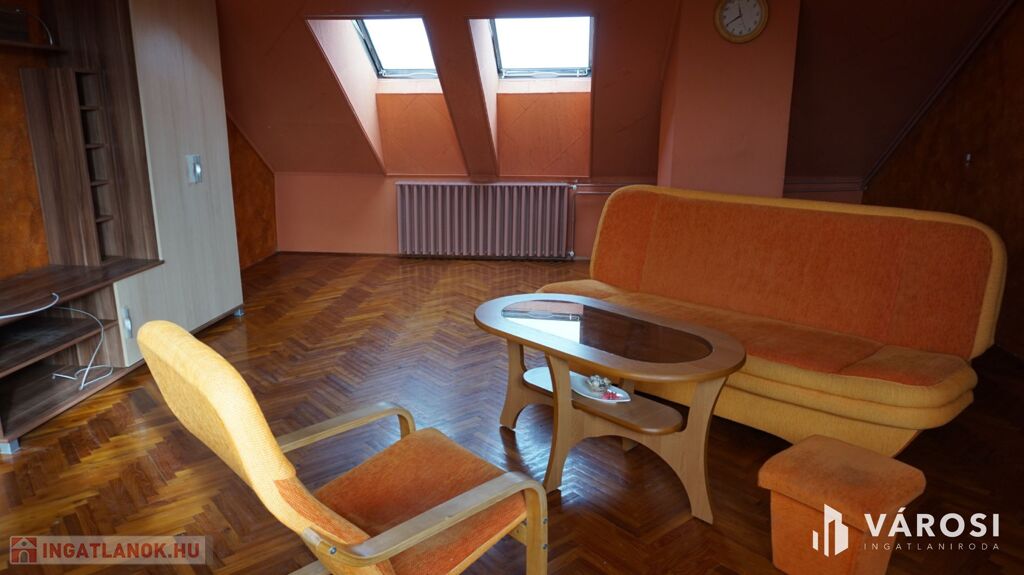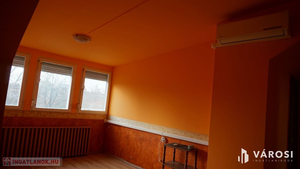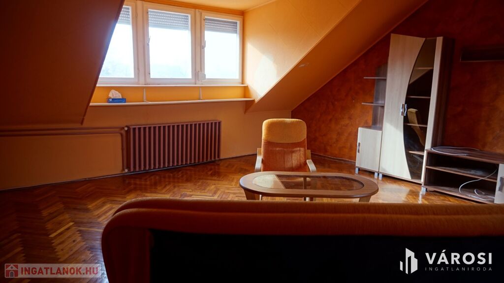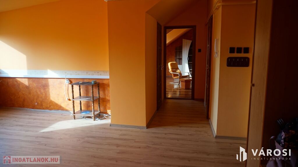 Hódmezővásárhelyen a Kálvin tér szomszédságában eladó, vagy szegedi panellakásra cserélhető egy szép állapotú, tágas napfényes tetőtéri lakás. Bruttó alapterülete 105 m2, nettó 80 m2 /az 1,9 m magasság által bezárt alapterület/.