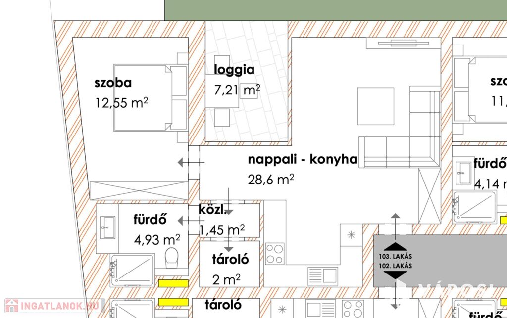 Makón, presztizs lokációval rendelkező - Makói fürdőtől 60 méterre, a Napfény Residenceben - a Páva utcában , Eladó egy most induló, tégla építésű, ELSŐ EMELETI , 57 nm-es élettérrel rendelkező, amerikai konyha nappali plusz egy szobás, loggiás tégla lakás (103.lakás).