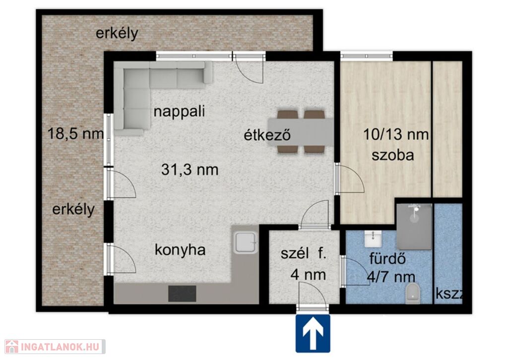 - 81/ 73 nm lakótér + 31 nm fedett terasz.