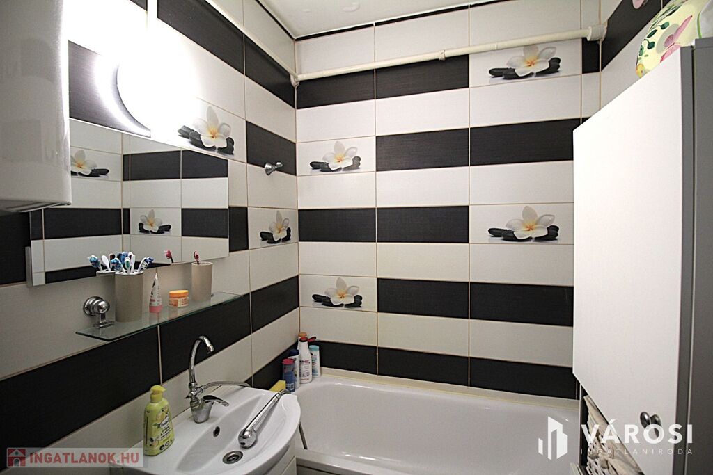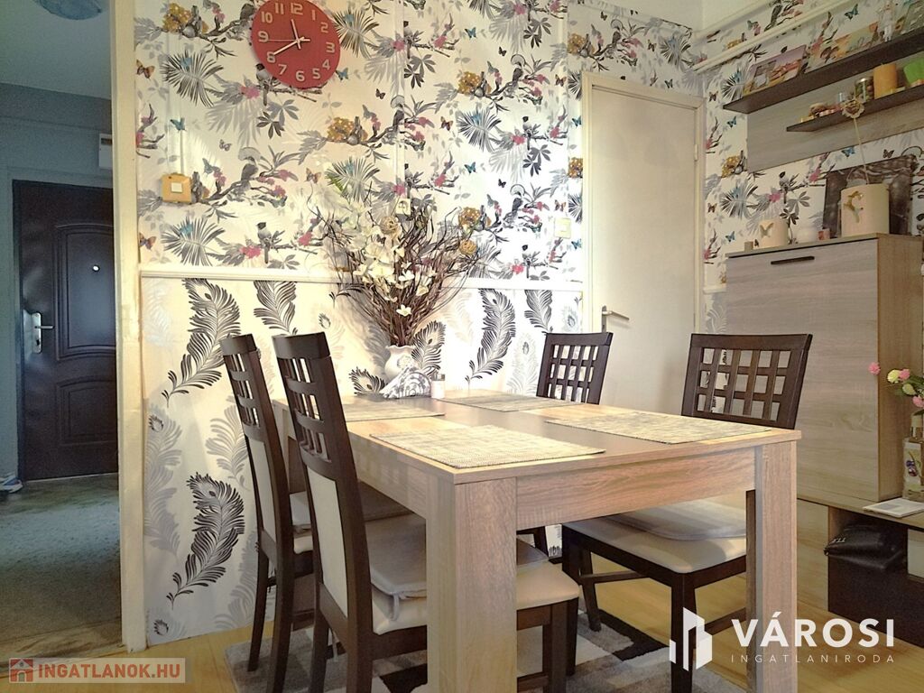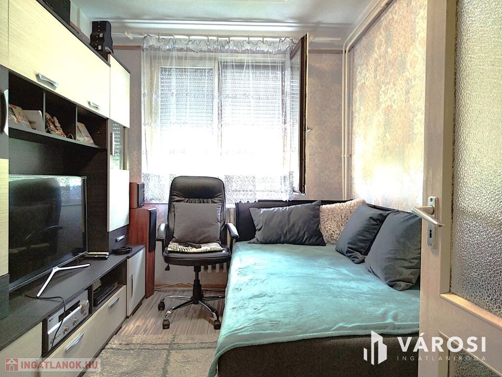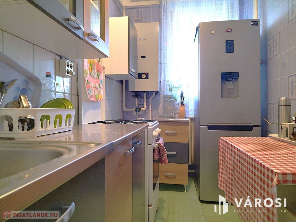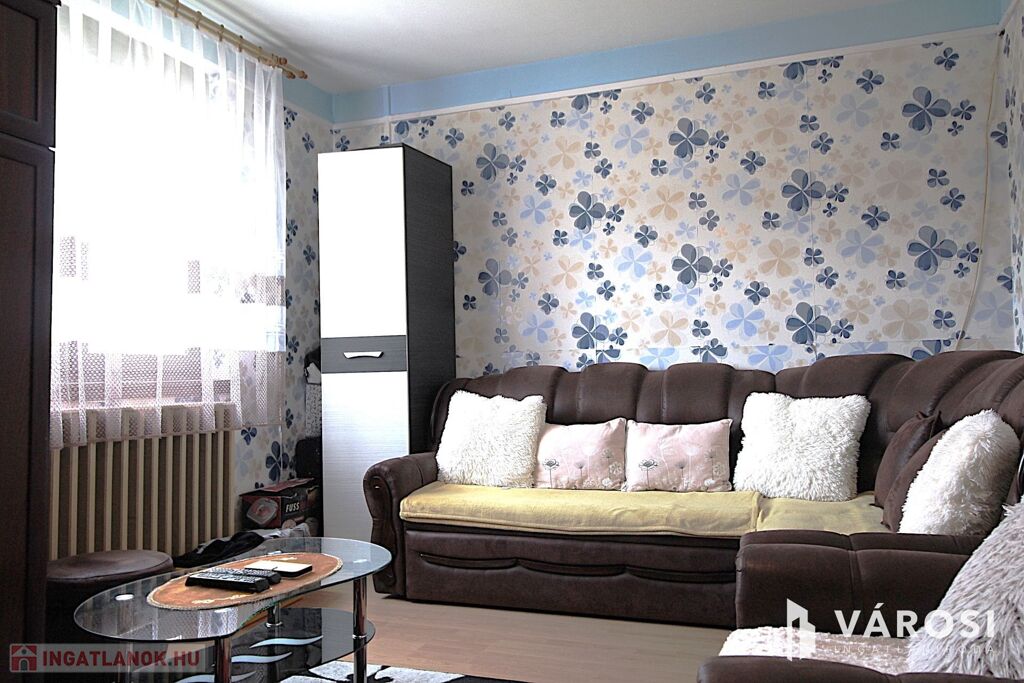 Salgótarjánban eladó egy 63 négyzetméteres, részben felújított, háromszobás, erkélyes lakás. A szobák, az étkező és a konyha laminált padlóval, a fürdőszoba, a WC és az erkély járólappal burkolt. A lakás elosztása praktikus, a konyha mellett külön étkező is található, ezen kívül egy nagy és két kisebb szobával is rendelkezik. A fürdőszoba és a WC külön helyiségben került kialakításra. A nagy erkély redőnyözött, így a nyári melegtől és a téli hidegtől egyaránt védi a lakás többi részét, ugyanakkor kellemes tartózkodási helyet biztosít a szabad levegőn, anélkül, hogy ki kellene menni a lakásból. A szobák ablakai is redőnyözöttek. A bejárati ajtó új, esztétikus kivitelű biztonsági ajtó. A lakás független főmérős vízórával rendelkezik. A fűtése egyedi központifűtés, cirkulációs gázkazánnal, melegvíz biztosítása elektromos fűtésű bojlerrel van megoldva. A lépcsőház minden szintjén van egy-egy közös tároló, amely az emeleten lévő négy lakáshoz tartozik. A lépcsőház tiszta rendezett, rendszeresen takarított. A bejárat kaputelefonos beléptetőrendszerrel védett. Parkolni az utcán díjmentesen lehet. A helyijárati buszmegálló kevesebb, mint kétszáz méterre van a háztól. A közelben van orvosi rendelő, óvoda, iskola, gyógyszertár, továbbá TESCO, LIDL, és Spar üzlet is.