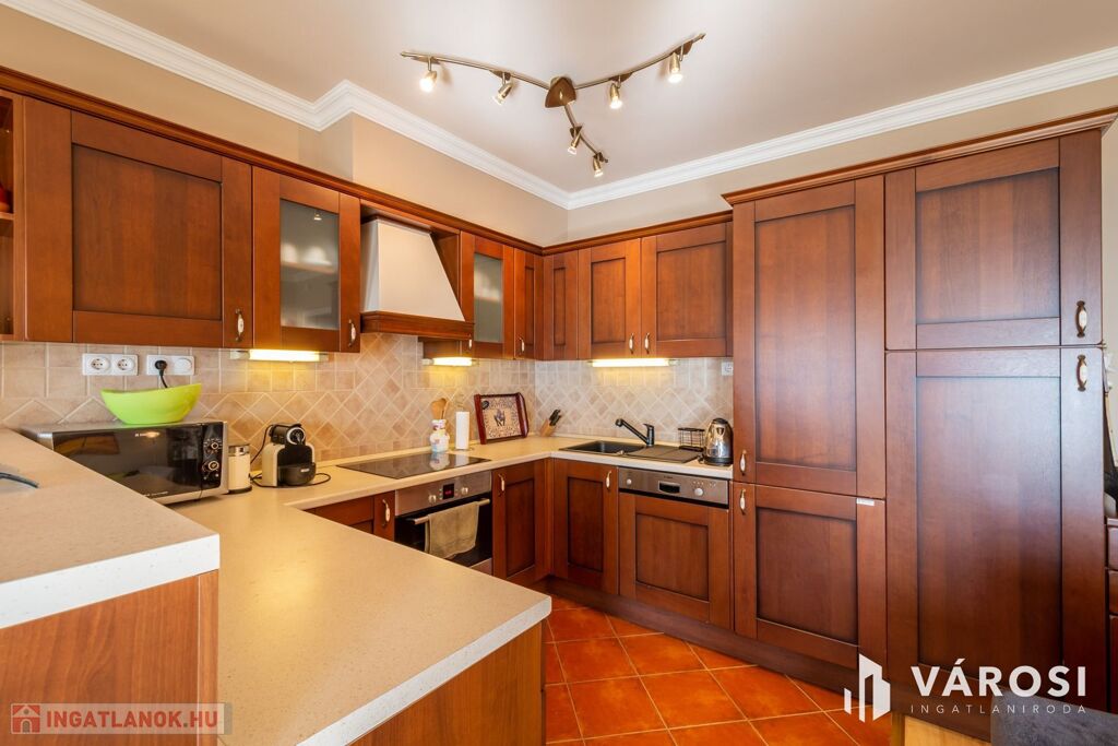 A vételár tartalmazza a méretre készült konyhabútort és gépeket (sütő, főzőlap, elszívó, mosgatógép, hűtő).