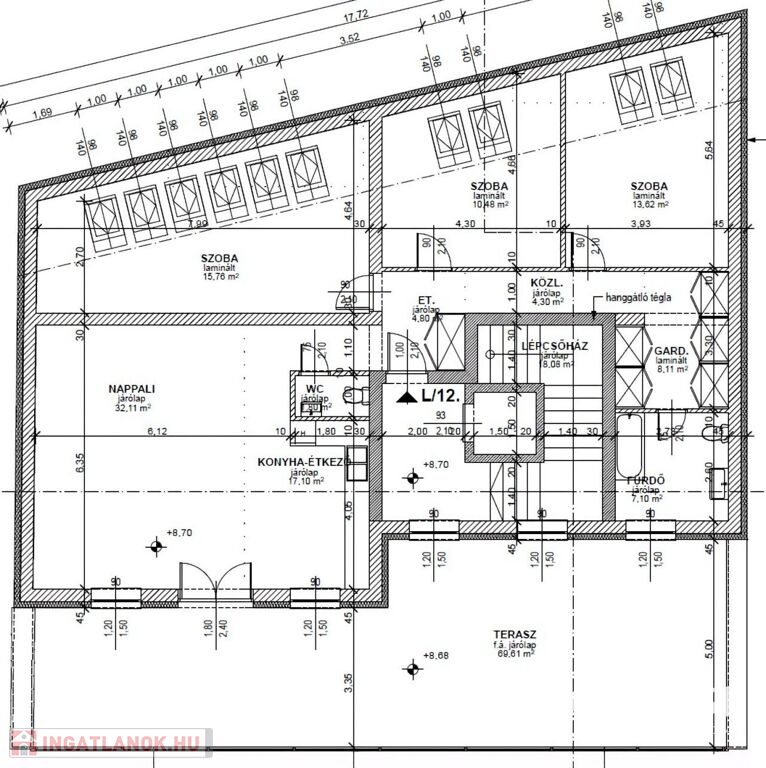 - Elrendezés: amerikai konyhás nappali, 3 hálószoba, 2 fürdőszoba, közlekedő, gardróbszoba, előtér és tetőterasz