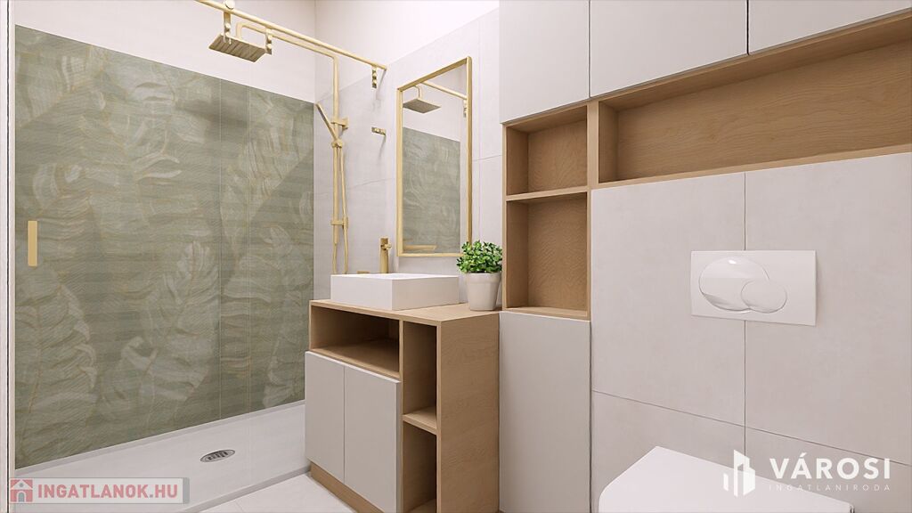 Az ár tartalmazza a burkolatokat, a konyhabútort gépesítve, mosógép nélkül.
