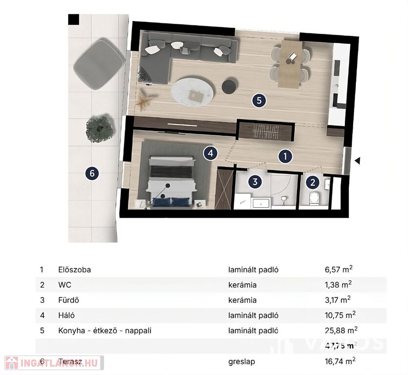 Figyelem! Jelen hirdetésben található alaprajz az "A" épület 102-es lakásához kapcsolódik, a képek látványtervek! További információért, aktuális árlistáért, szabad lakásokért és alaprajzokért keressen bizalommal!