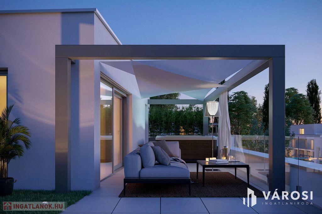 - Legfelső szinti penthouse lakások: tágas tetőteraszokkal, napvitorlával árnyékolva vagy igény szerint végleges fedéssel, valamint jakuzzi kialakítási lehetőséggel