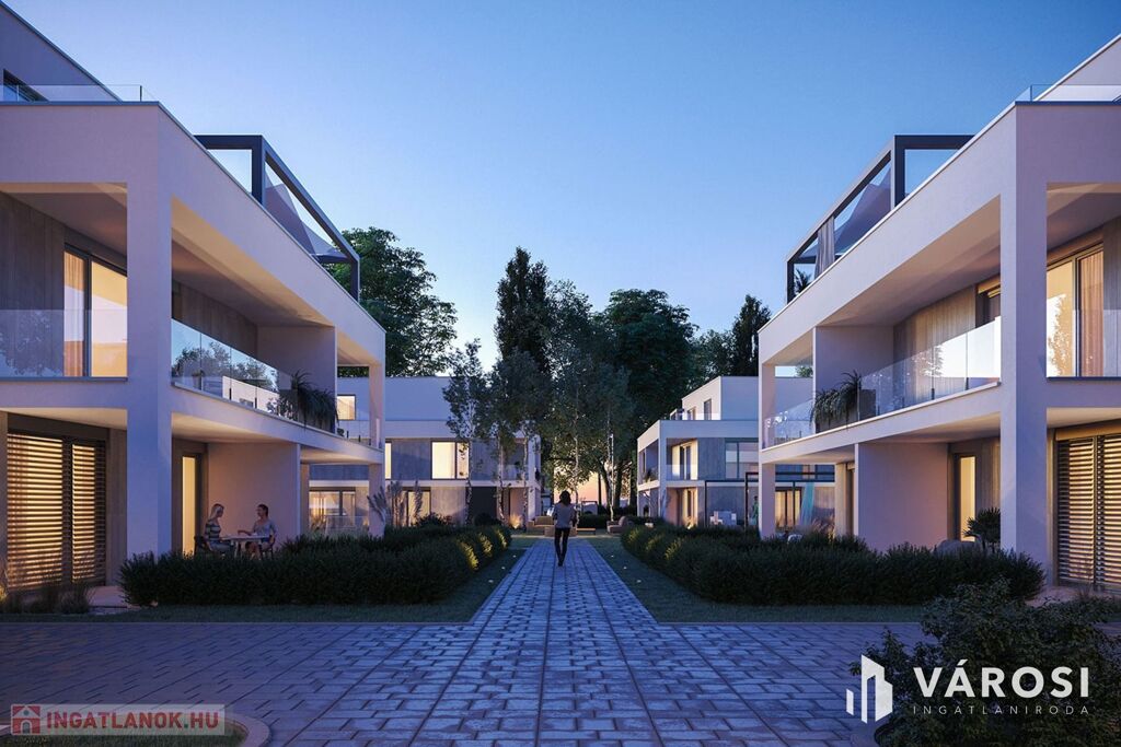 - Földszinti lakások: fedett terasszal és saját, kertkapcsolatos udvarrésszel, élősövénnyel leválasztva