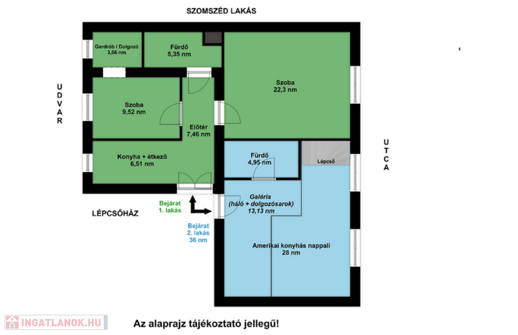 - 2 különnyíló szoba, az egyikhez saját gardrób.