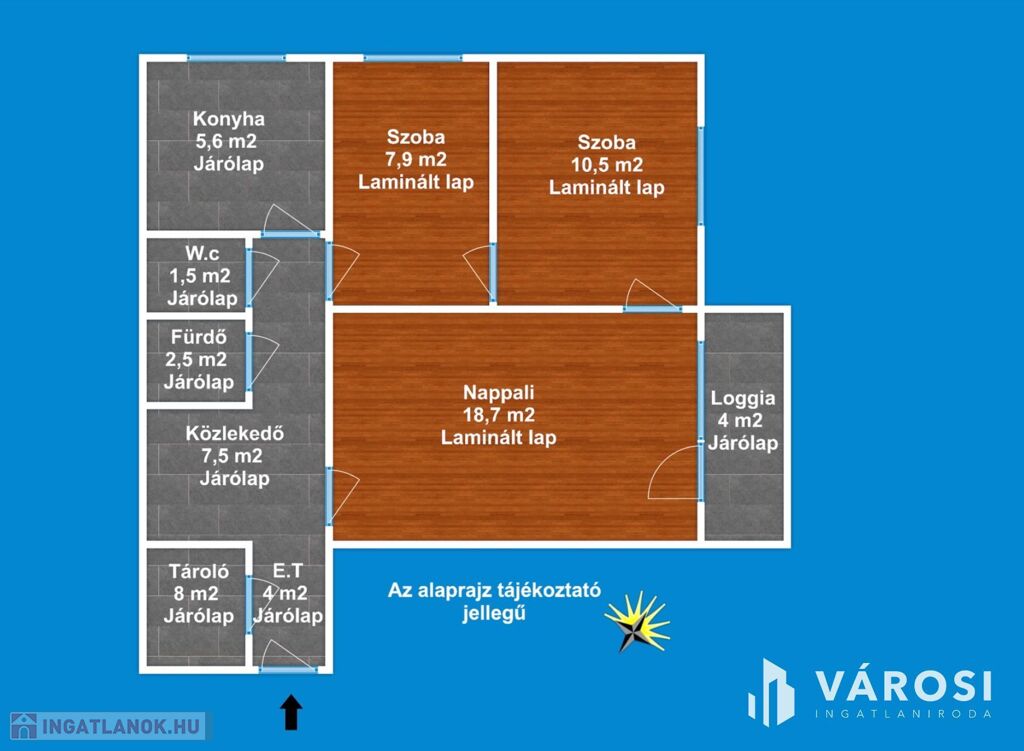 A lakás 1 db nappalival, 2 db hálószobával, 1 db fürdőszobával, külön Wc-vel, közlekedővel, tárolóval előtéttel rendelkezik. Az ingatlan elhelyezkedésre, kialakítása miatt rendkívül sokrétű a felhasználása - akár lakás, vagy befektetési célra -, amely maximálisan kiemeli ezt az ingatlant az átlagos lakások sorából és egyedülálló választássá teszi azt.