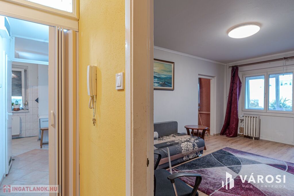 Szeged Felsőváros városrészében, a Kereszttöltés utcában eladó, egy 1979 - ben épült nyolcadik emeleti, Részben felújított 67 nm - es, panel építésű, nappalival, és két szobával, tárolóval, előtérrel, és erkéllyel rendelkező lakás.