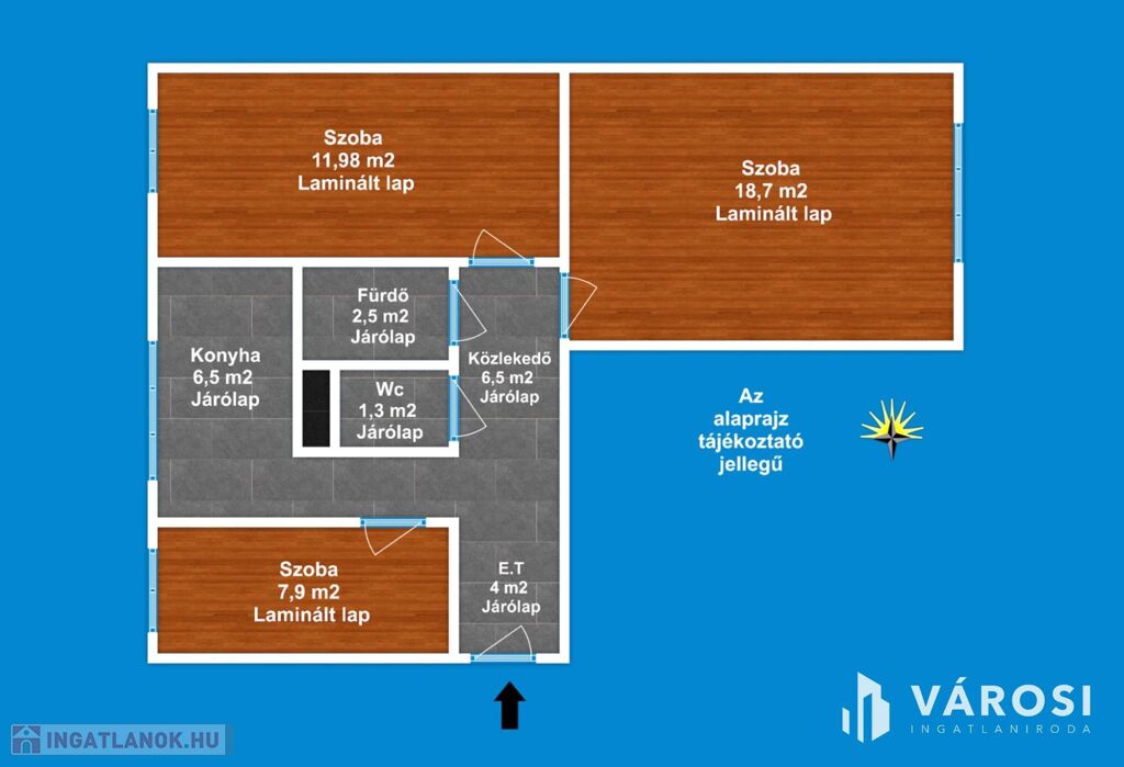 A lakás 1 db nappalival, 2 db hálószobával, 1 db fürdőszobával, külön Wc-vel, közlekedővel, előtérrel, rendelkezik. Az ingatlan elhelyezkedésre, kialakítása miatt rendkívül sokrétű a felhasználása - akár lakás, vagy befektetési célra -, amely maximálisan kiemeli ezt az ingatlant az átlagos lakások sorából és egyedülálló választássá teszi azt.