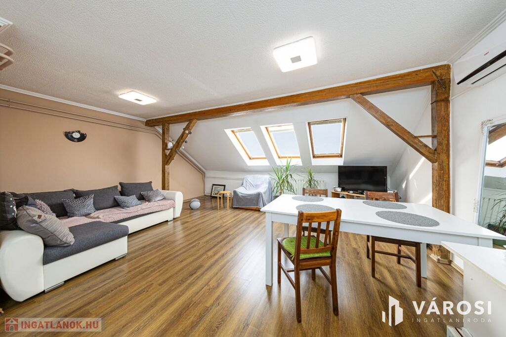 Szeged Felsővároson kínálom megvételre ezt a hangulatos, harmadik emeleti tetőtéri lakást. Ha szereted azokat a tetőtereket, ahol a fagerendák látszanak és ki tudod használni a bennük rejlő lakberendezési potenciált, akkor megérkeztél, most ez a lakás a tiéd lehet.