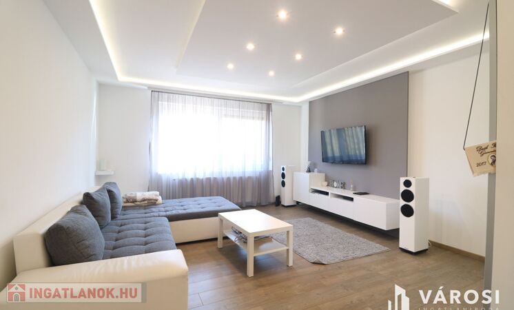Szeged belvárosában a Novotel Hotel szomszédságában 84 nm-es, Nappali + 2 szobás igényes lakás, garázzsal eladó.
