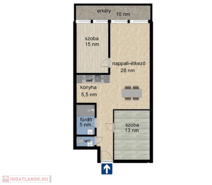 - Nappali.2 hálószoba, fürdő, WC, erkély.