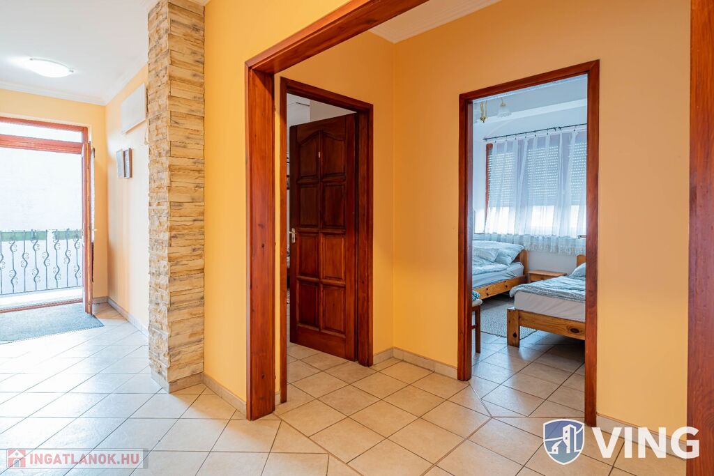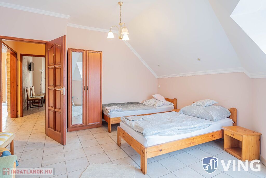 Az emeleten egy panzió üzemelt 5 darab különálló szobával, két 3 ágyas és három 2 ágyas szoba. Valamint három darab különálló fürdőszoba és egy mini teakonyha található. A szobák klimatizáltak és ablakai redőnyözöttek.