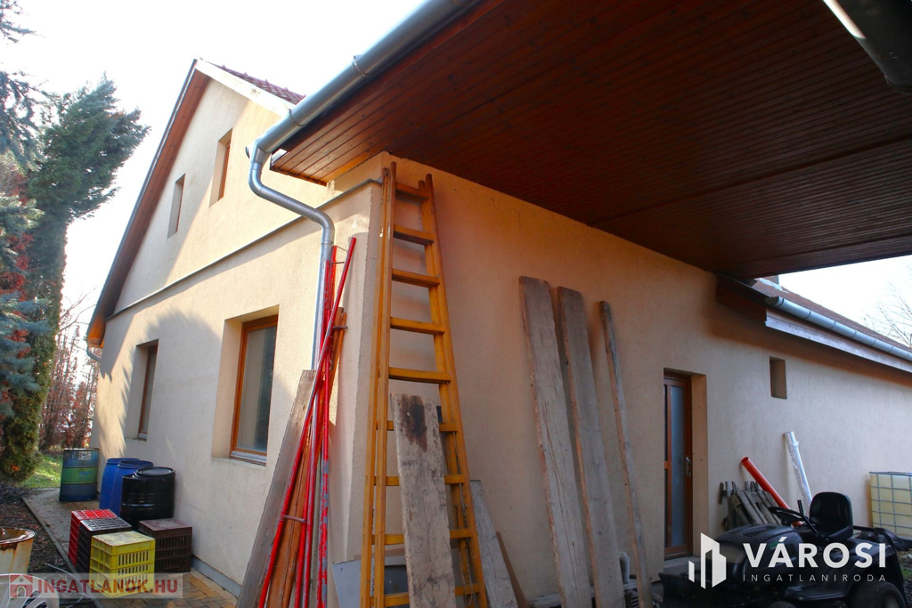 + szerkezetkész épület, víz, villany, gáz bevezetésre került, csatornahálózatra köthető,