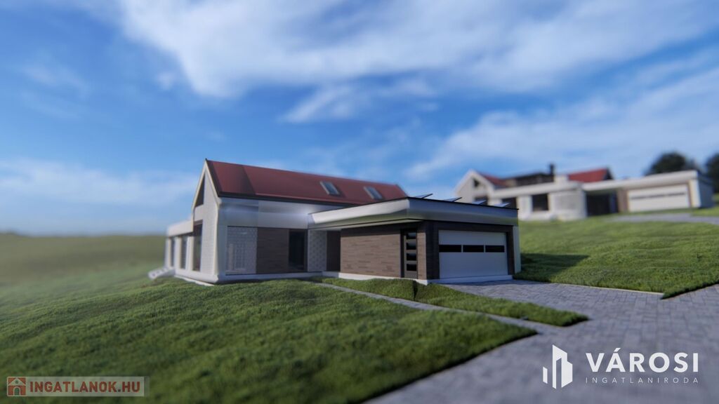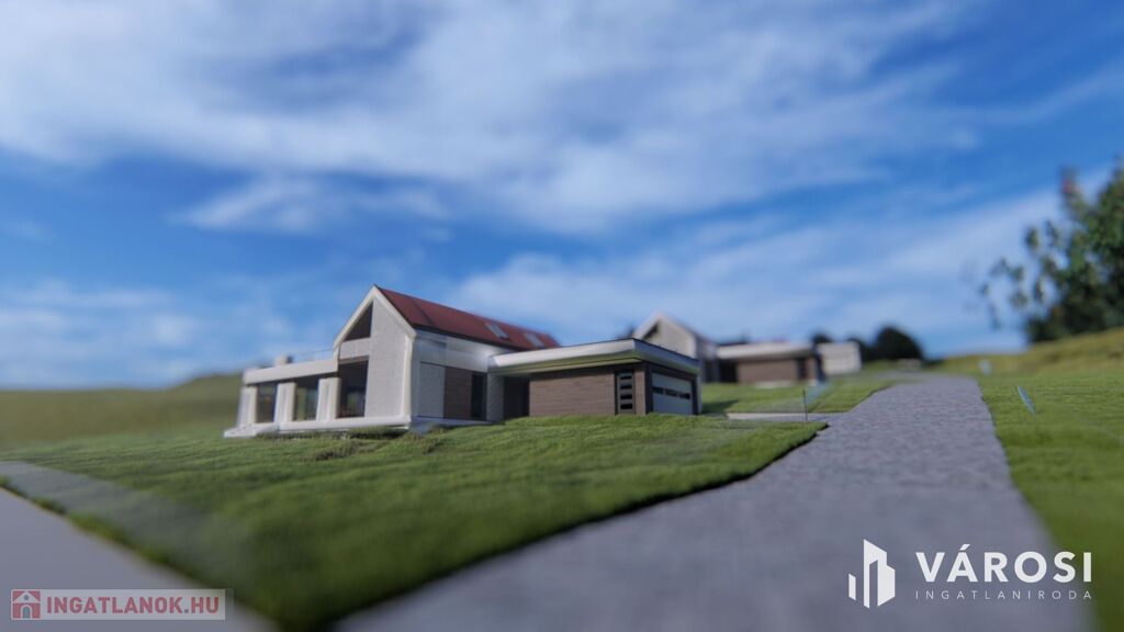 A telken szabadon elhelyezhető a ház. A képeken látható elhelyezés a látványterv része. A leendő tulajdonos elképzelései, tervei lesznek a meghatározók.