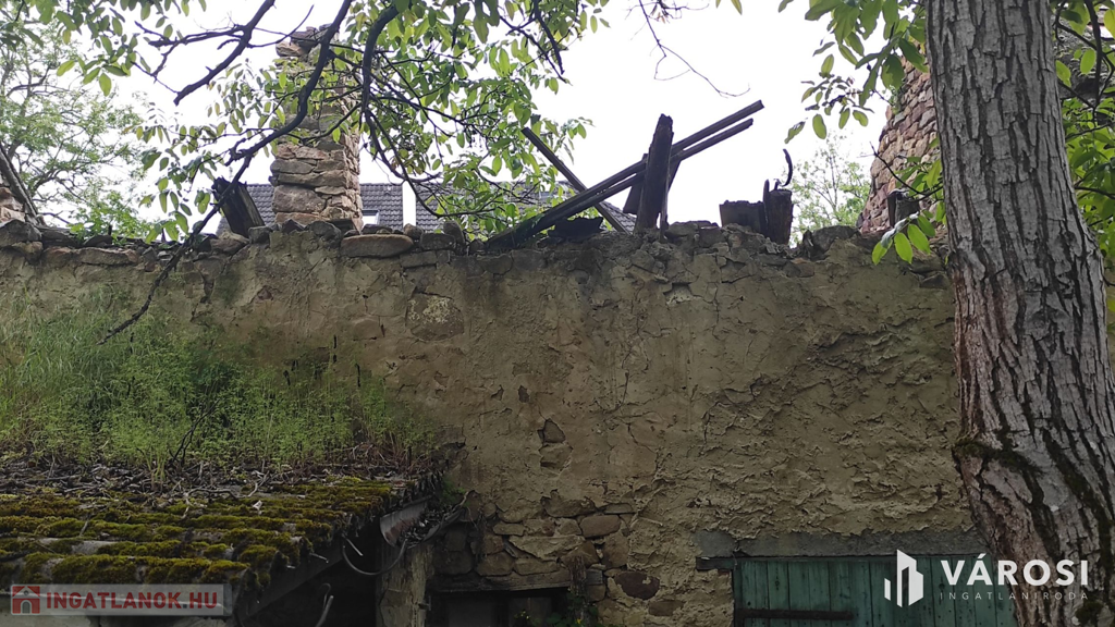 A valamikor szebb napokat megélt épület, az előtte álló ugyancsak romos épület udvarán keresztül szolgalmi joggal megközelíthető. A domboldalon elnyúló telek területe 504 m2, - kilátással a kővágóörsi hegyekre, - oldalhatáron beépített. Az alaprajzon feltüntetett épület falai állnak, helyiségei jól kivehetők. Két szoba, konyha, nappali, fürdőszoba volt a régi házban.