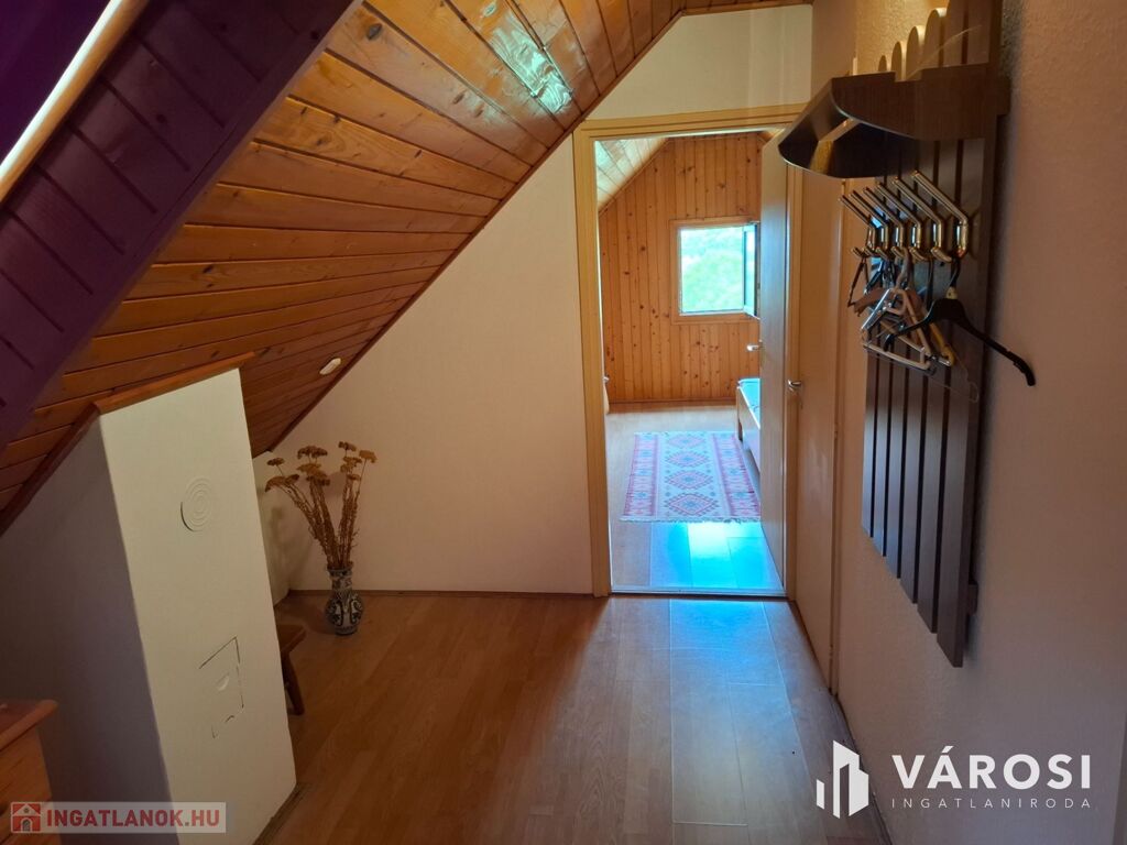 Csendes, zöldövezeti környezetben,3785 m²-es telken található ez a kétszintes, 90 m²-es nyaraló. A földszinten nappali–konyha–étkező, az emeleten két hálószoba, külön fürdő és WC szolgálja a kényelmet. Az ingatlan berendezett, fa zsalugáteres ablakokkal, vezetékes vízzel, szennyvíz-elhelyezéssel, új villamoshálózattal és 3 fázisú árammal rendelkezik.
