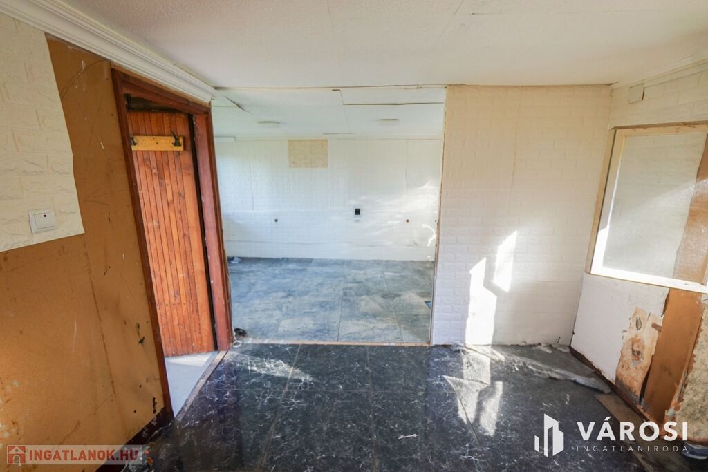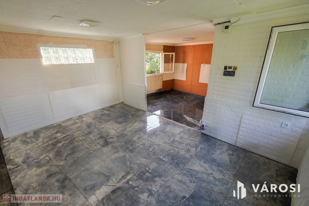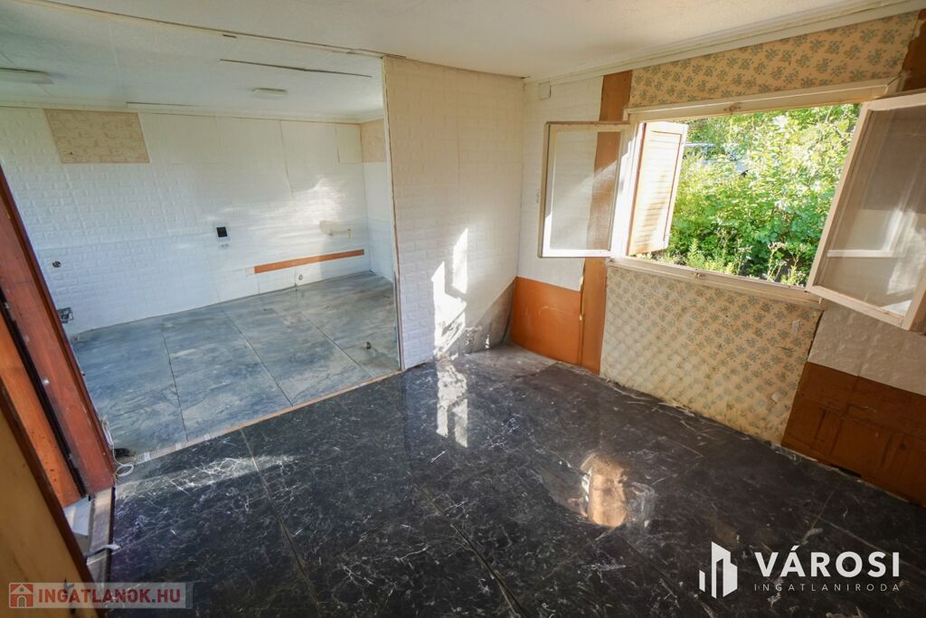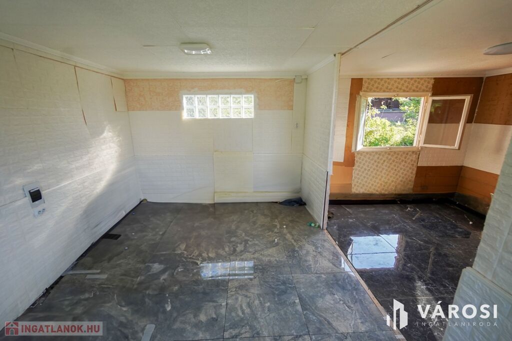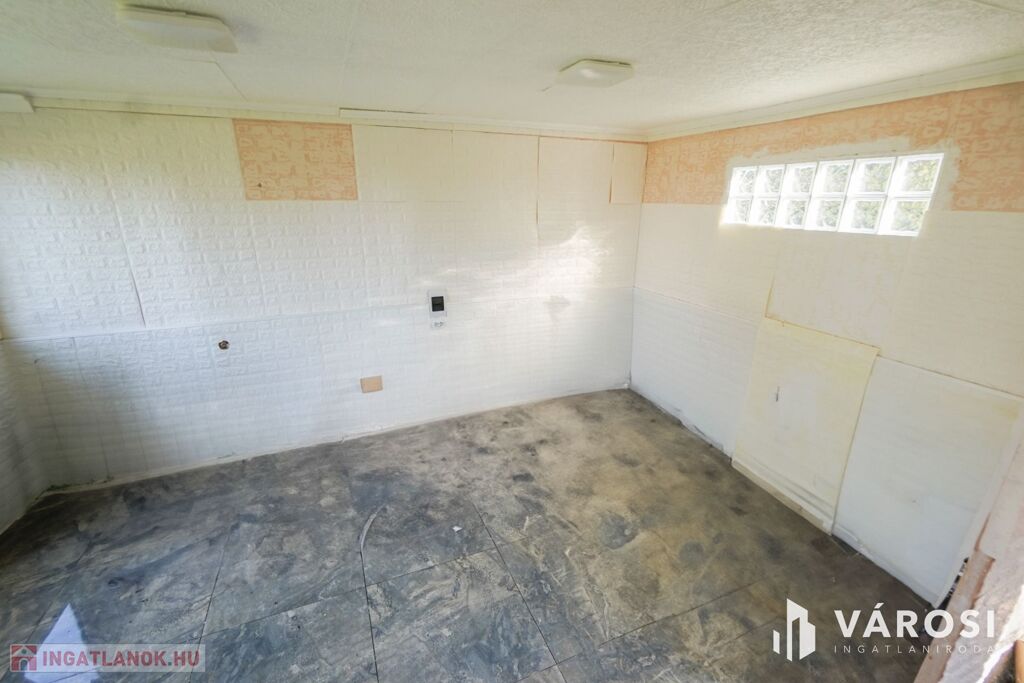 A könnyűszerekezetes nyaraló mely egy konyhából és egy szobából áll jelenleg. Fürdőszoba elképzelés szerint a bejárat mentén történt volna de ennek a kialakítása már az új tulajdonos feladata.
