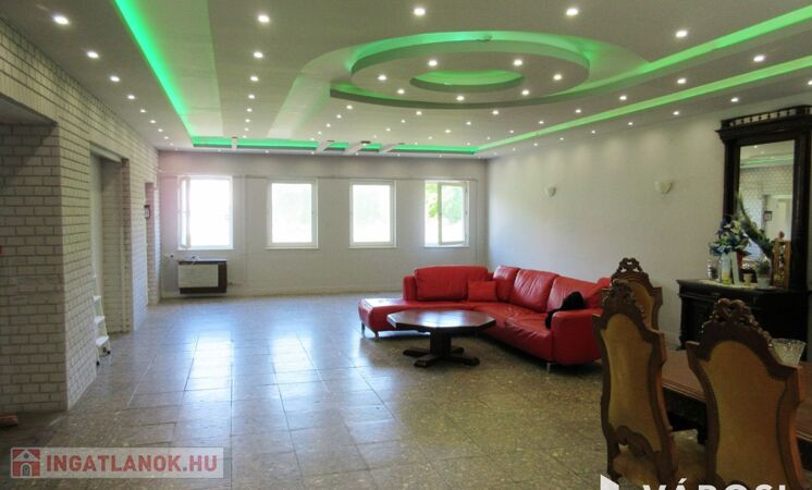 Szegeden kínálom eladásra ezt az éttermet. A földszinten 175 négyzetméteren a vendéglátáshoz szükséges infrastruktúra, az emeleten egy hatalmas 150 négyzetméteres lakó rész, valamint van még egy boros pince is, mely szintén tekintélyes, 90 négyzetméteres. 1984-ben épült, 2021-ben felújították, nyílászárókat cseréltek, tavaly pedig a villamos hálózatot, állapota kiváló. Jó az elhelyezkedése: könnyen megközelíthető, sok autó tud előtte parkolni.