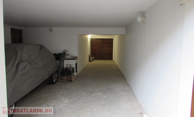 A garázsban áram áll rendelkezésre. A fa kétszárnyú garázsajtó 2 méter széles. A garázsba 2 autó egymás mögött elfér, de a helységet legcélszerűbb raktárnak használni.