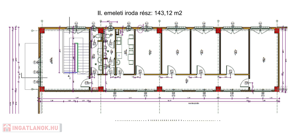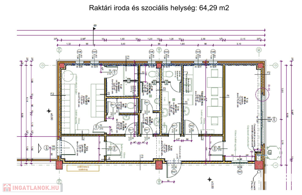 Az ipari létesítmény földszintjén helyezkedik el a termelői rész, a raktárcsarnok, valamint az irodai és szociális helyiségek (öltöző, kézmosó, férfi és női WC, zuhanyzók és teakonyha).
