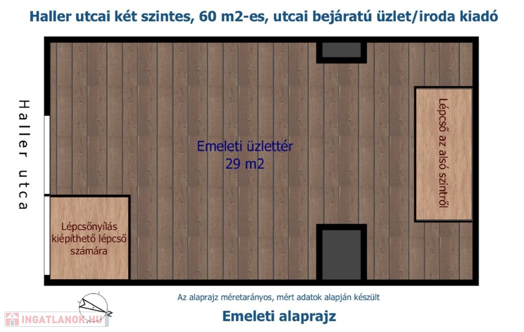 60 M2-ES, UTCAI BEJÁRATÚ, KÉT SZINTES, HALLER UTCAI IRODA KIADÓ