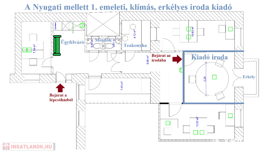 Vállalkozás számára székhelyként, telephelyként az iroda bejelenthető.