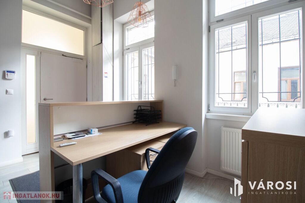 Rendkívül frekventált helyen, a Nyugati pályaudvartól 3 perc sétára, A KÖRÚTTÓL 100 MÉTERRE, tömegközlekedéssel is könnyen elérhető, tégla építésű, LIFTES ház 1. emeletén kiadó egy 14 m2-es, több munkahely kialakítására alkalmas iroda berendezett állapotban.