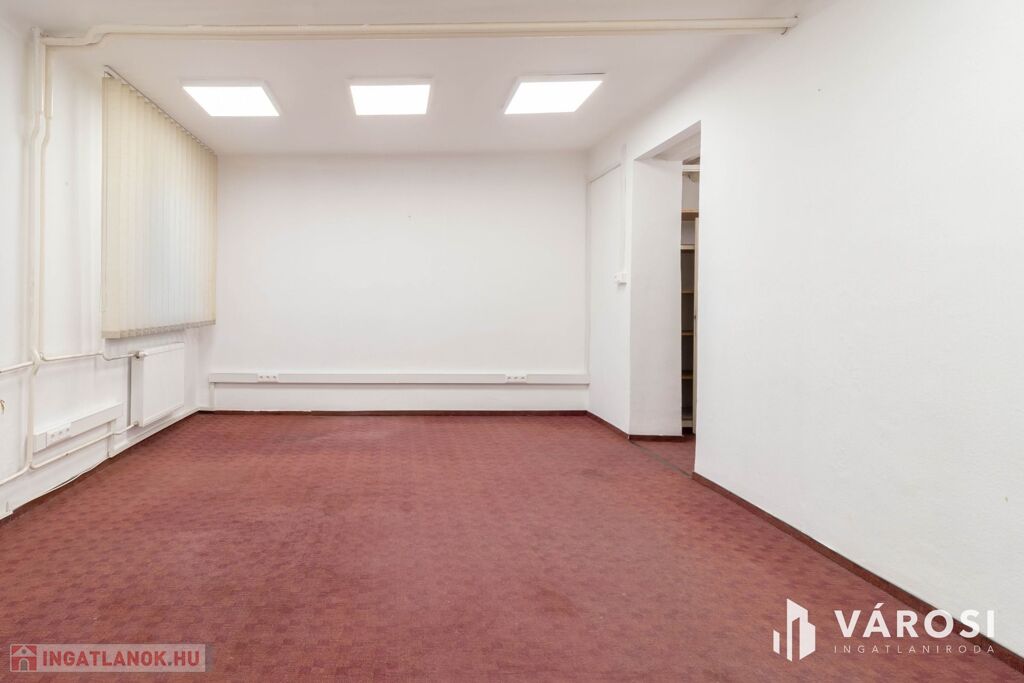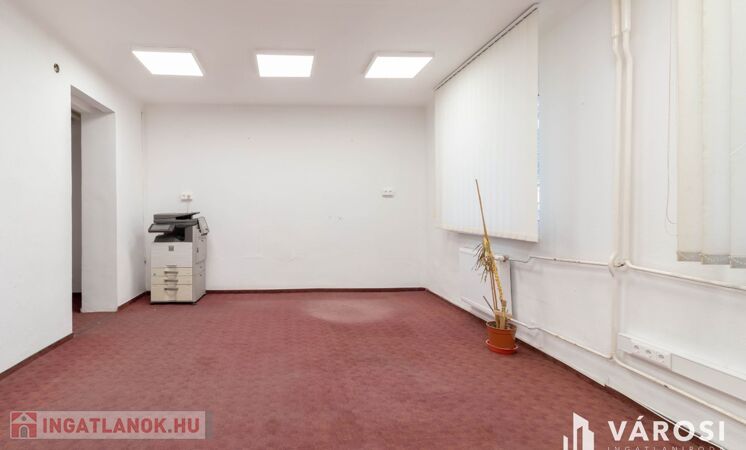 A 32 m2-es iroda az irodaház földszintjén helyezkedik el. A helyiség padlószőnyegezett.