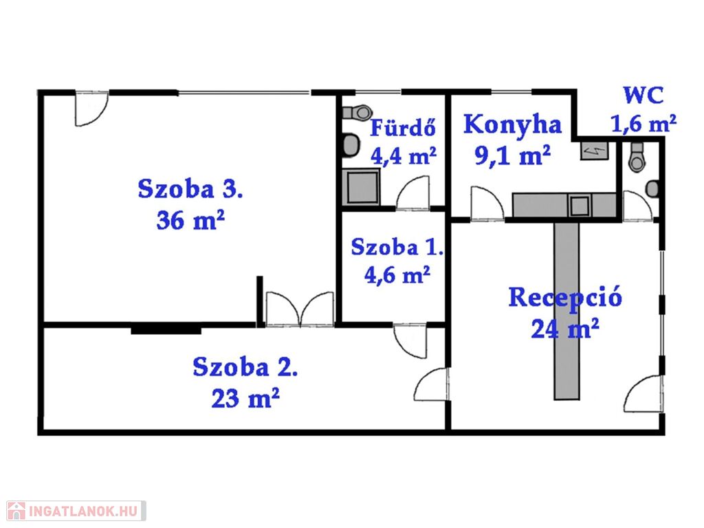 Alapterület: 103 m2, alaprajz szerinti elrendezésben, a képeken látható állapotban.