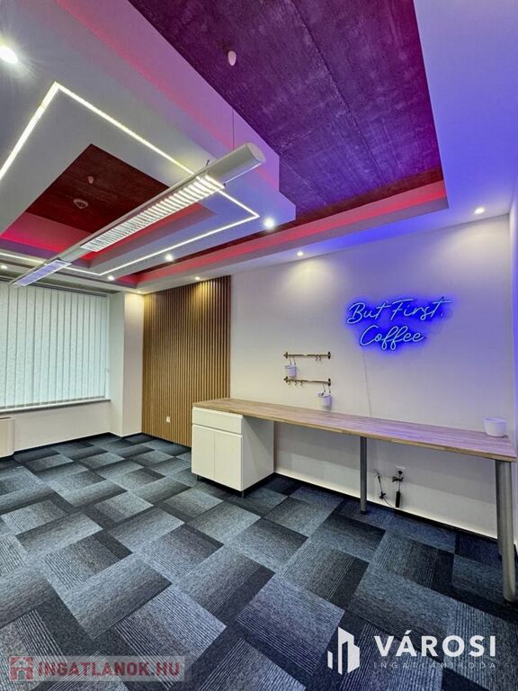 Kiadó egy modern iroda Debrecen Belváros közeli városrészében, ideális elhelyezkedéssel és könnyű megközelíthetőséggel. Az ingatlan 300 m² lakótérrel és 65000 m² teljes telekmérettel rendelkezik. Fiatal, újszerű állapota garantáltan kellemes munkakörnyezetet biztosít. Az iroda étkezővel és női férfi mosdóval rendelkezik, így kényelmes és hatékony munkavégzésre nyújt lehetőséget a dolgozóknak. Az alacsony fenntartásnak köszönhetően anyagi vonzereje is kiemelkedő. A jó közlekedési lehetőségeknek köszönhetően könnyedén elérhető a belváros és a környező területek is. A parkosított udvar garantáltan ideális pihenőhely a szünetekben vagy céges rendezvények lebonyolítására. A prémium anyagokkal burkolt iroda teraszán élvezheti a friss levegőt, míg az korlátlan udvari gépjárműbeálló lehetőség, kényelmet nyújt az autós dolgozóknak. Az irodaház zöld övezetben található, így kellemes zöld környezet veszi körül. A klíma és a riasztó rendszer biztosítják az ideális hőmérsékletet és a biztonságot. A dekorvilágítás és a fali dekor burkolatok pedig varázslatos hangulatot teremtenek az iroda egész területén. A garázs lehetőség és a kamera rendszer pedig további kényelmet és biztonságot nyújt a dolgozóknak. Az optikai internet kábel és a levegőszellőztető pedig lehetővé teszi az egyenletes és hatékony munkavégzést. Az irodapark területén, étterem, kávézó, konditerem, masszázsszalon és egyéb szolgáltatások teszik még élhetőbbé a munkanapokat. Ne habozz, bérelj egy ilyen prémium irodát és élvezd az így nyújtotta előnyöket!