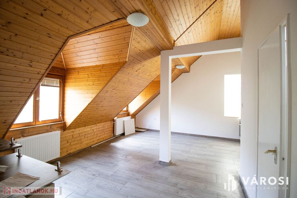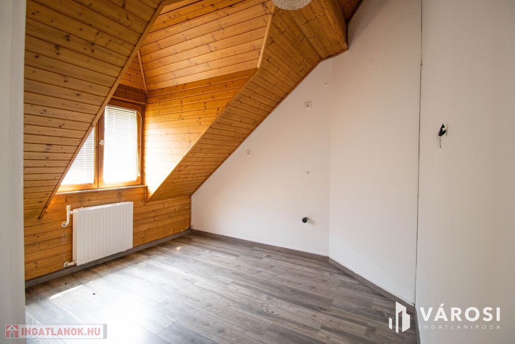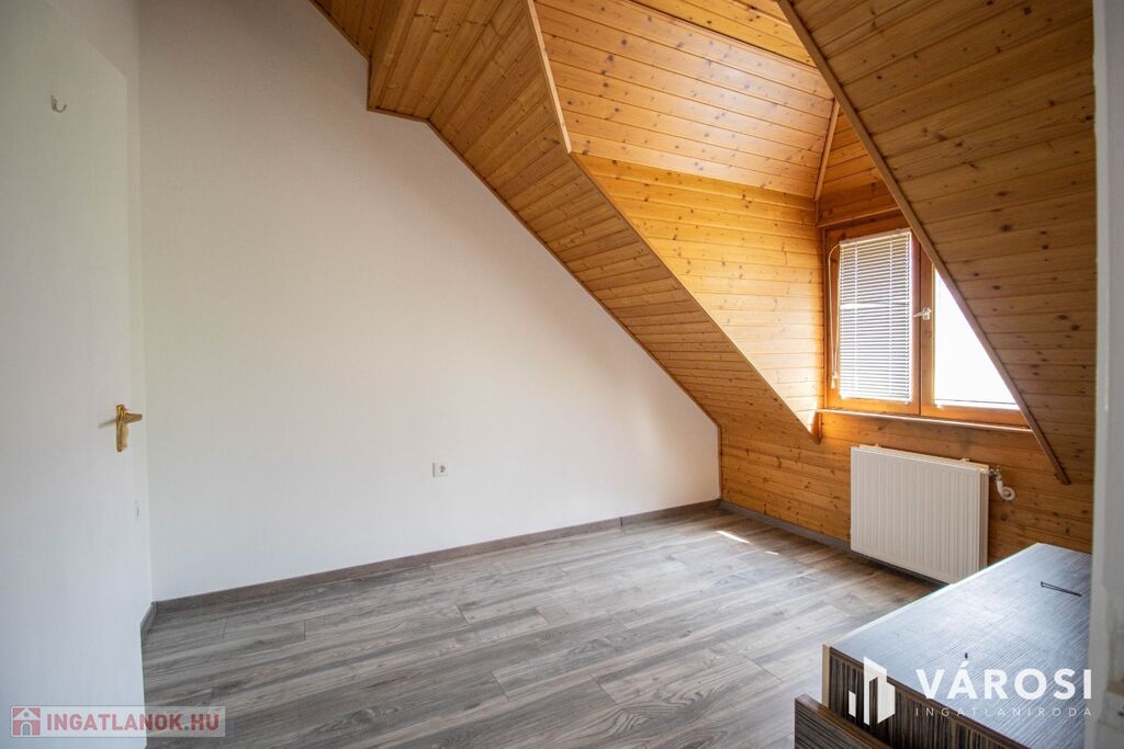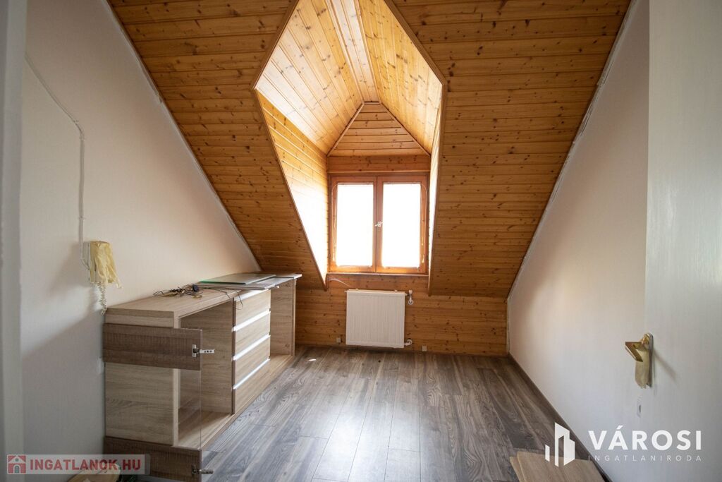 A közlekedőből nyíló 3 szoba, valamint a nappali-konyha laminált padlós, a tetőtéri ablakok fából vannak, a fűtése kombi gázkazánnal megoldott - radiátor hőleadókkal.