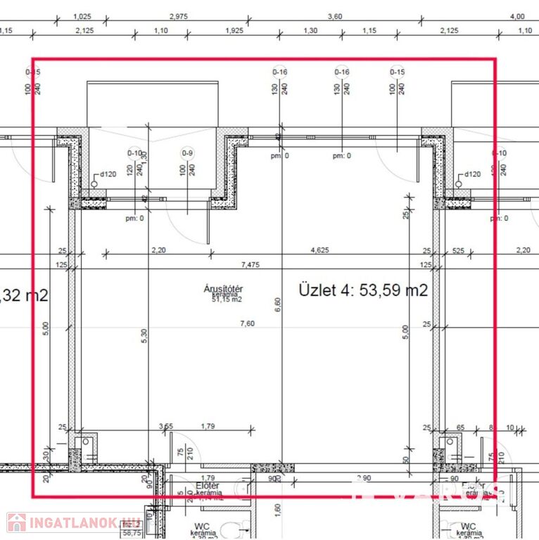 Az ingatlan alapterülete: 53,59 m2, utcafronti, nagy kirakattal rendelkezik.