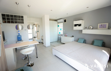 A földszinten található egy amerikai konyhás nappali, egy tágas, részben üvegfallal határolt fürdőszoba, ahol akár a kádból is nézheti a kedvenc filmjét. Továbbá két hálószoba , az egyikből közvetlenül egy panorámás teraszra lehet kilépni.