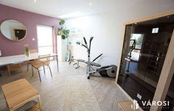 Itt két autó számára tervezett garázs várja új járgányait, ami mellett egy remek, utcafrontról is megközelíthető helyiség található, mely jelenleg relax szobaként/fitneszteremként használatos, de önálló bejárata miatt üzletszerű tevékenységre is alkalmas.