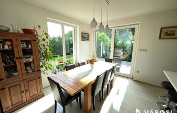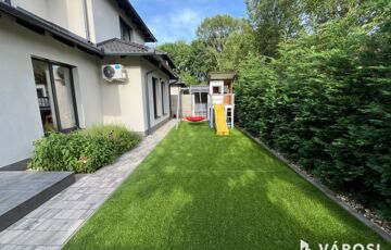 Debrecen Vámospércsi út közelében a Balla lakóparkban, gyönyörű madárcsicsergős zöldövezetben, 180 nm-es 4 szoba nappalis újszerű igényes ház eladó. Az ingatlanhoz dupla garázs tartozik, és szépen parkosított 470 nm-es kert van hozzá, ahol helyet kapott egy nagy fedett terasz, és a hátsó kertben egy gyereksarok játszóházzal. A ház alsó szintjén helyezkedik el a nappali, tágas étkező konyha amelyből közvetlen terasz kapcsolat van, egy szoba és egy zuhanyzós fürdőszoba. A felső szintre érkezve a közlekedőből három hálószoba nyílik és egy kádas fürdőszoba, plusz egy mosókonyha wc-vel. Az ingatlan valóban gyönyörű erdőkkel tarkított csendes zöldövezetben található, ahol tényleg megvan az emberben az igazi otthon érzés. Nézze meg próbálja ki, nem fog csalódni!