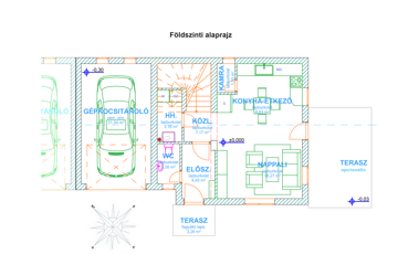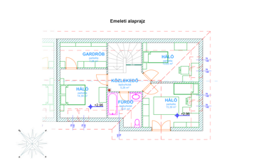 A többi már kész: 30-as téglafalak, 15 cm-es grafit szigeteléssel, gázfűtés takarékos kondenzációs gázkazánnal, garázs, a belső kerítés kész, a külső most van építés alatt stb.